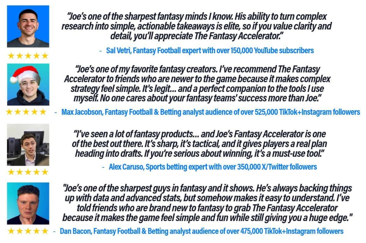 You’ll have all the tools to optimize your lineup every week, plus priority access to Joe’s Q&A sessions (office hours) as your secret weapon.